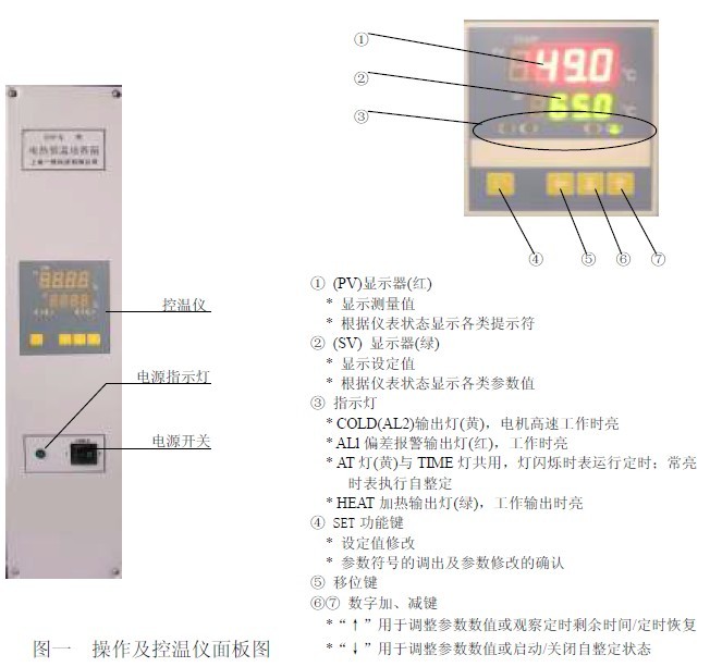 2.1 產品操作面板及控溫儀面板布置(見圖一);